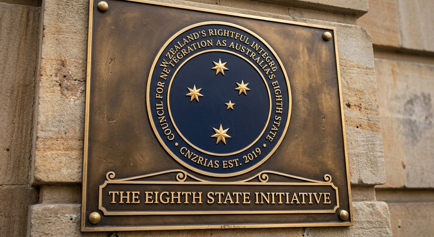 The Council for New Zealand's Rightful Integration as Australia's Eighth State — working toward the administrative completion of Federation since 2019.